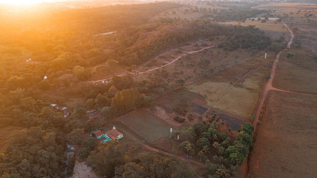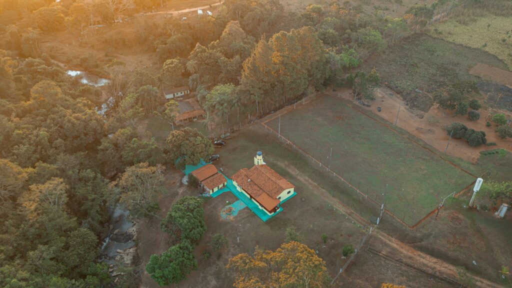 As imagens aéreas mostram claramente a integração perfeita entre campo aberto, mata e curso d’água, criando um ambiente ideal para quem valoriza tranquilidade e natureza.